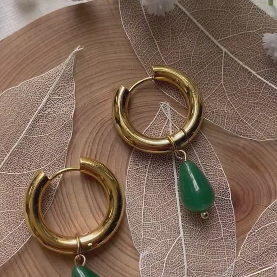 Slip into something green with these playful Jade Dangle Huggie Earrings! Featuring authentic green jade that dances with every movement, they're the ultimate accessory for March babies and jade devotees alike. The huggie design hugs your ear with a gentle embrace while the dangling jade adds just enough swing to keep things fun and flirty. Known for bringing balance and tranquility, jade isn't just beautiful—it's meaningful too. From morning meetings to evening celebrations, these gemstone earrings are your go-to for adding a touch of natural elegance and playful charm to any moment.